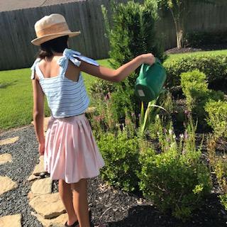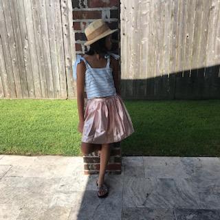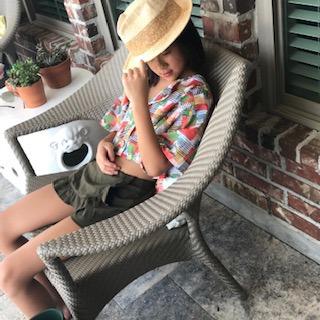 Shoulder-tied Blouse/Pleated Satin Skirt